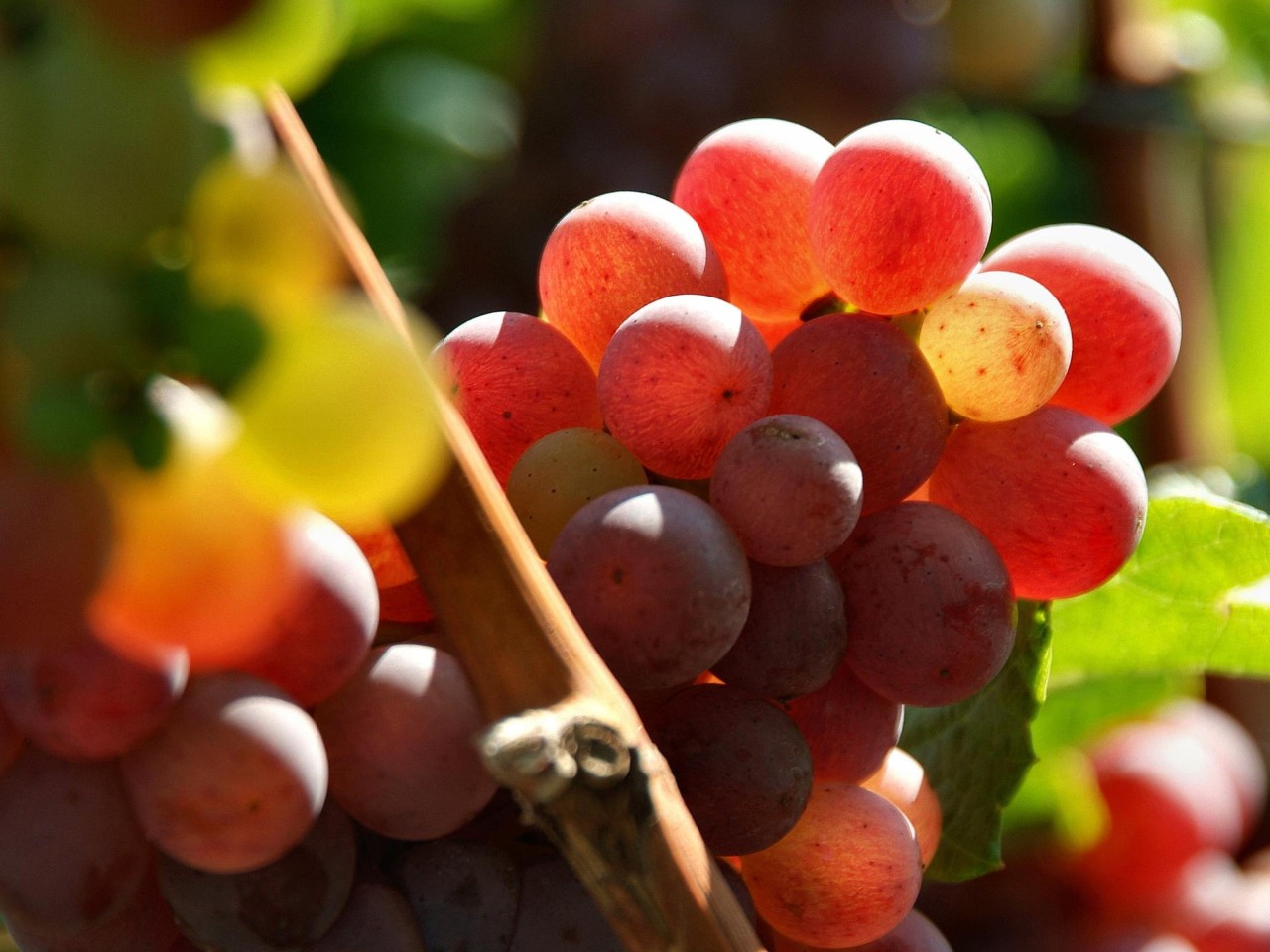 • Pinot Noir: made into red wine, this grape typically has aromatic notes of red fruits. Raising the wine in the wood barrel adds a touch of vanilla and toast. A perfect match for red meat and game.